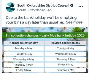 Bin collection days change due to the early Spring Bank Holiday